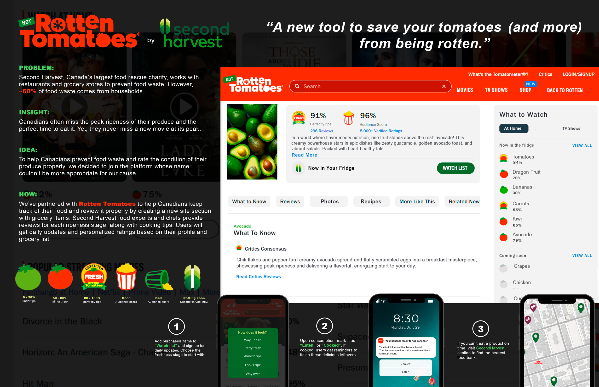 To promote the initiative, we'll place our banners on traditional Rotten Tomatoes and in supermarkets, driving people to the new site section.