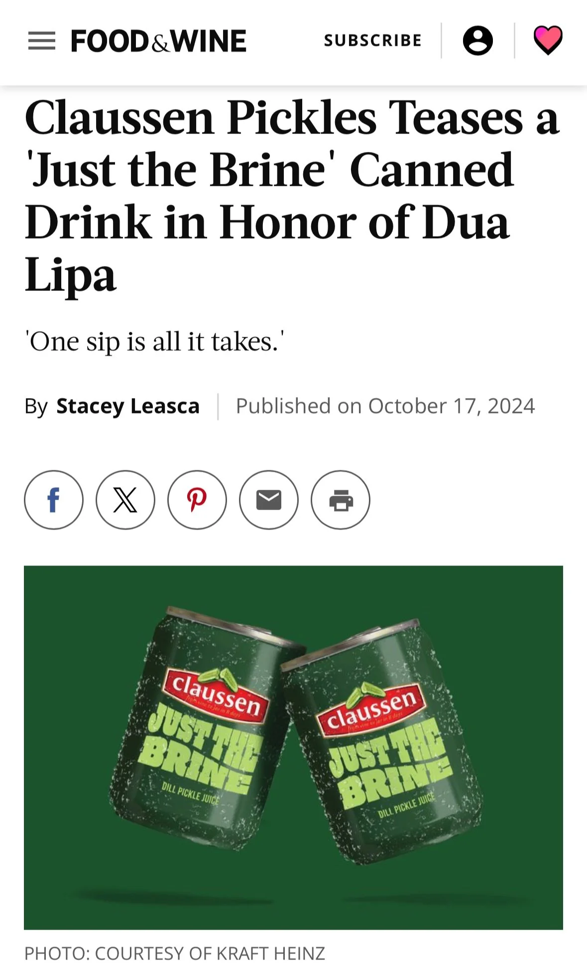 Introducing Just the Brine – a mini-can of pickle juice that’s perfect for jazzing up your glass of cola or sipping on its own to satisfy your brine cravings anytime, anywhere!